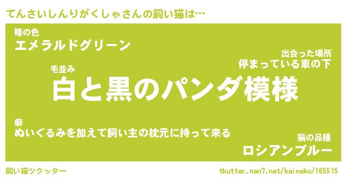 | パンダ模様のシャム猫、、(略 …「めい」 | 6月18日 03:09 |