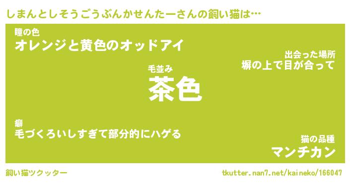 | 猫 | 猫の名前『しまにゃん』性別『オス』 |