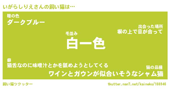 いがらしりえさんの飼い猫は… 毛並み『白一色』瞳の色『ダークブルー』猫の品種『ワインとガウンが似合いそうなシャム猫』 ツクッター #飼い猫ツクッター http://tkutter.nan7.net/kaineko/166946/
