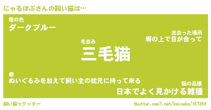 | ファンタジー風あだ名 | 『ニャフェル』『エターナルニャルホプー』 |
