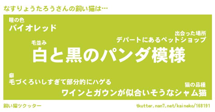 | ツイッター | なすりょうたろうさんのツイッターID『namakemono_man』 |