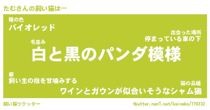 | パンダ模様のシャム猫、、(略 …「めい」 | 6月18日 03:09 |