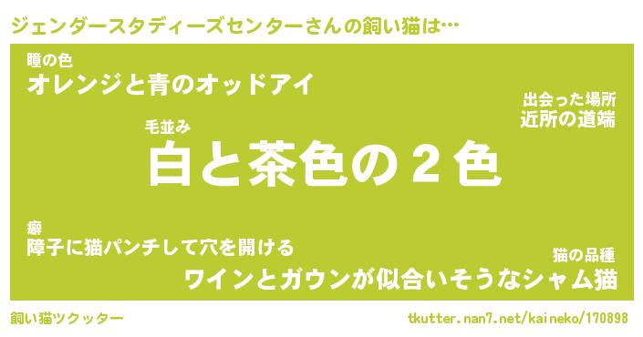 | 先生 | ジェンダースタディーズセンター先生が勤める学校名『町立肉球高校』 |