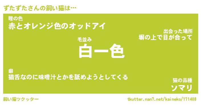 | ポケモン風あだ名 | 『ズタチュウ』『ズタズダネ』 |