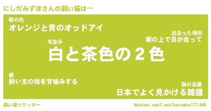 | 2回繰り返すあだ名 | 『にしにし』『ににしし』『ぬるぬる』 |