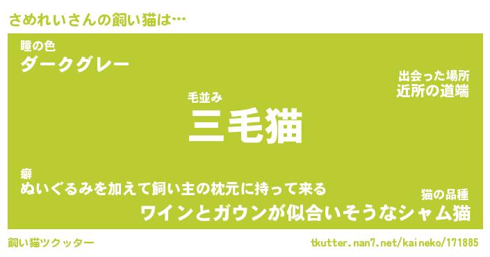 | 意味不明あだ名 | 『ペロリンさめれい』『永久保存さめれい』 |