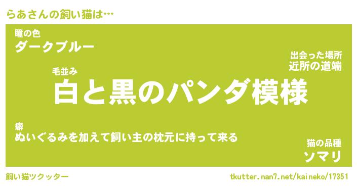| パンダ模様のシャム猫、、(略 …「めい」 | 6月18日 03:09 |