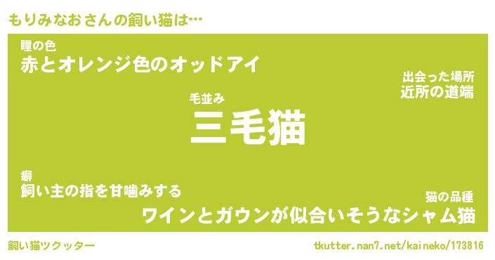 | ポケモン風あだ名 | 『モリチュウ』『モリミダネ』 |