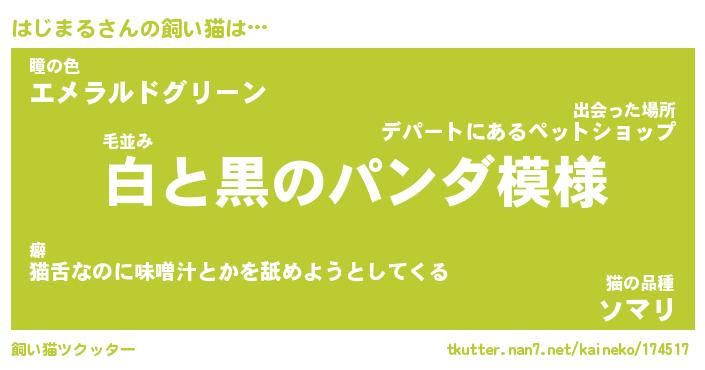 | パンダ模様のシャム猫、、(略 …「めい」 | 6月18日 03:09 |
