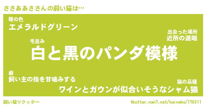 | パンダ模様のシャム猫、、(略 …「めい」 | 6月18日 03:09 |