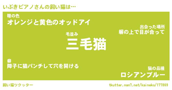 | 猫 | 猫の名前『いぶいぶにゃん』性別『♂』 |