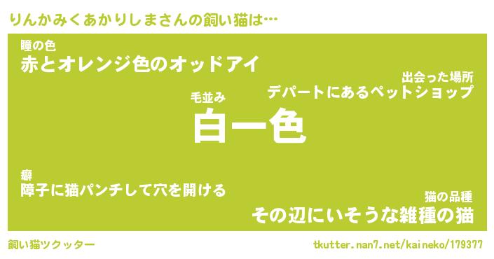 | 猫 | 猫の名前『りんかみくあかりしまにゃん』 |