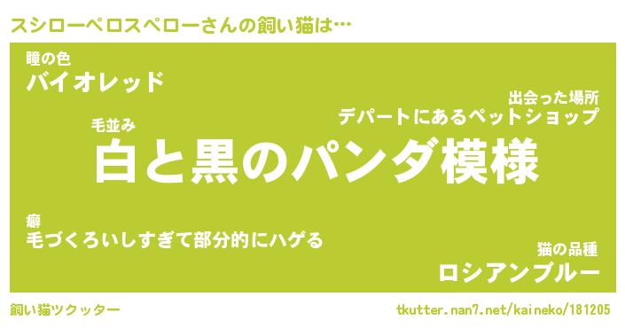 | ツイッター | スシローペロスペローさんのツイッターID『dendenmushi_nyan』 |