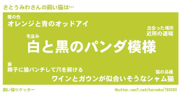 | パンダ模様のシャム猫、、(略 …「めい」 | 6月18日 03:09 |
