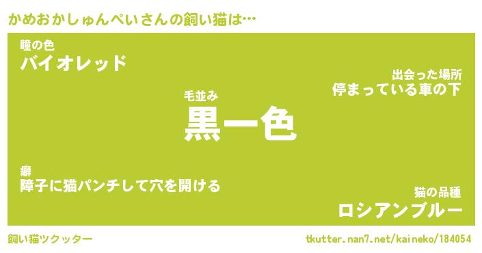 かめおかしゅんぺいさんの飼い猫は… 毛並み『黒一色』瞳の色『バイオレッド』猫の品種『ロシアンブルー』 ツクッター #飼い猫ツクッター http://tkutter.nan7.net/kaineko/184054/