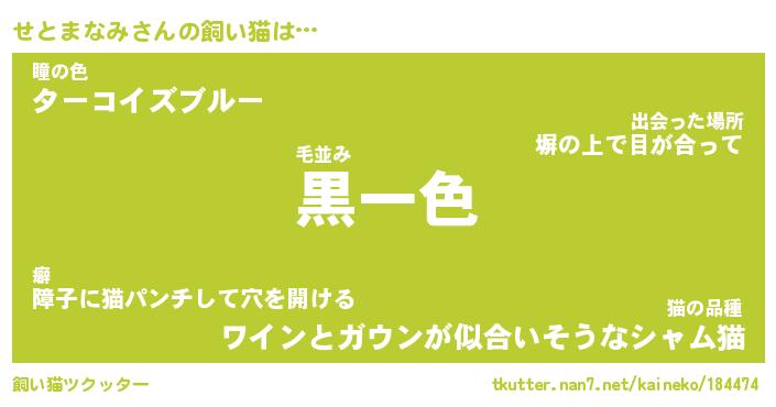 | パンダ模様のシャム猫、、(略 …「めい」 | 6月18日 03:09 |