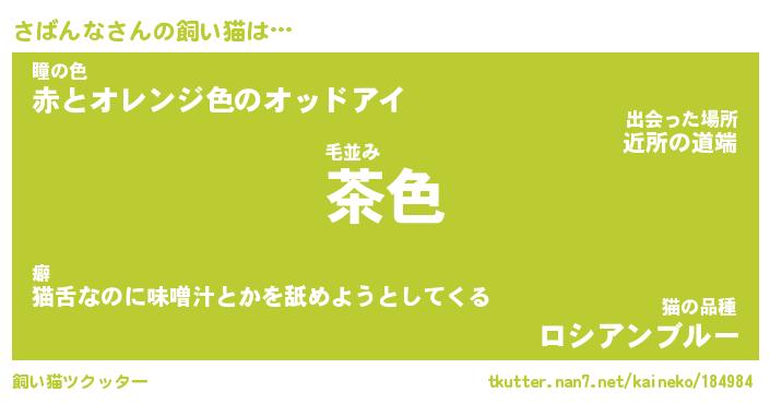 | ファンタジー風あだ名 | 『サバフェル』『エターナルサバンナー』 |