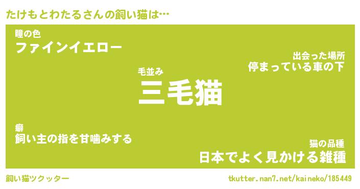 | 2回繰り返すあだ名 | 『たけたけ』『たたけけ』『ぬらぬら』 |