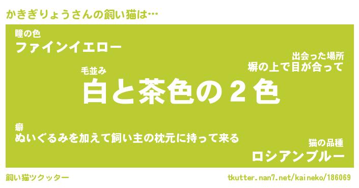 かきぎりょうさんの飼い猫は… 毛並み『白と茶色の2色』瞳の色『ファインイエロー』猫の品種『ロシアンブルー』 ツクッター #飼い猫ツクッター http://tkutter.nan7.net/kaineko/186069/