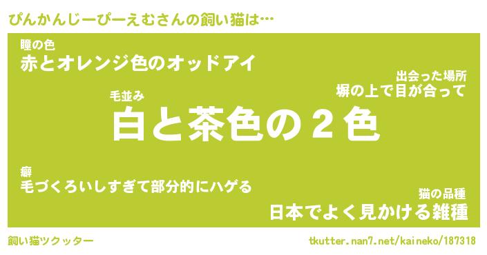 | 猫 | 猫の名前『ぴんかんじーぴーえむーにゃん』 |