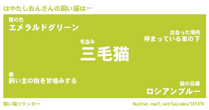 | ツイッター | はやたしおんさんのツイッターID『katatsumuri_kun』 |