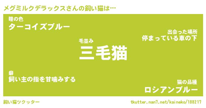 | ツイッター | メグミルクデラックスさんのツイッターID『dendenmushi_nyan』 |
