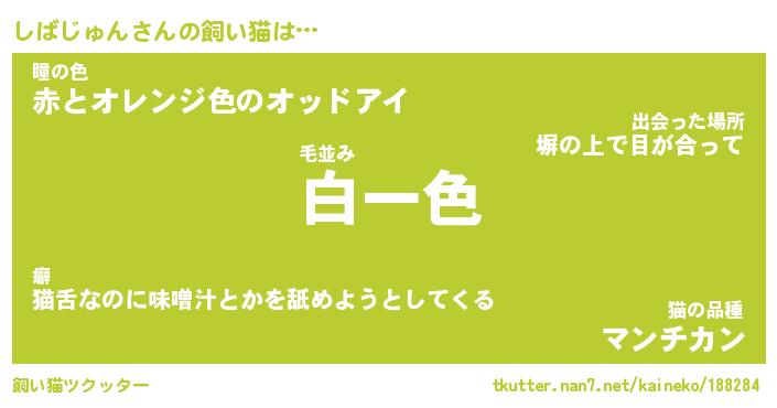 しばじゅんさんの飼い猫は… 毛並み『白一色』瞳の色『赤とオレンジ色のオッドアイ』猫の品種『マンチカン』 ツクッター #飼い猫ツクッター http://tkutter.nan7.net/kaineko/188284/
