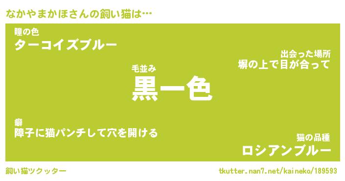 なかやまかほさんの飼い猫は… 毛並み『黒一色』瞳の色『ターコイズブルー』猫の品種『ロシアンブルー』 ツクッター #飼い猫ツクッター http://tkutter.nan7.net/kaineko/189593/