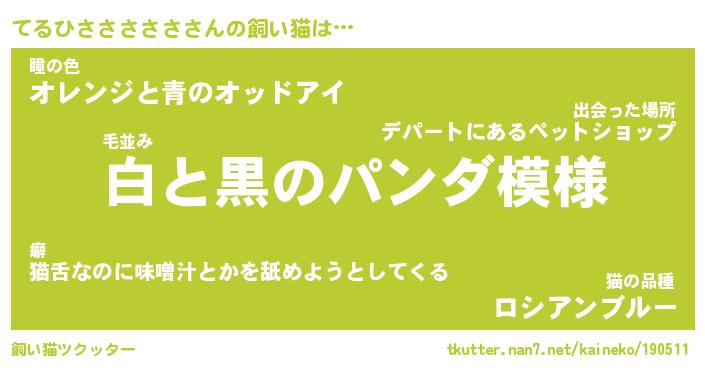 | パンダ模様のシャム猫、、(略 …「めい」 | 6月18日 03:09 |