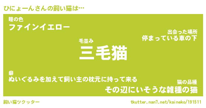 ひにょーんさんの飼い猫は… 毛並み『三毛猫』瞳の色『ファインイエロー』猫の品種『その辺にいそうな雑種の猫』 ツクッター #飼い猫ツクッター http://tkutter.nan7.net/kaineko/191511/
