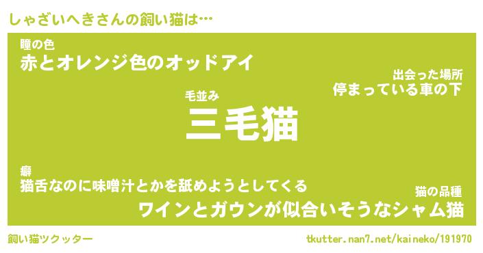 | 猫 | 猫の名前『しゃしゃにゃん』性別『雌』 |