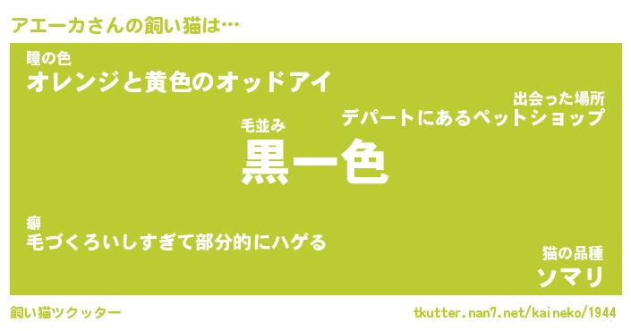 | 猫の名前『アエーカにゃん』性別『♂』 |
