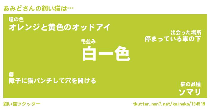 | 猫の名前『あみどにゃん』性別『♀』 |