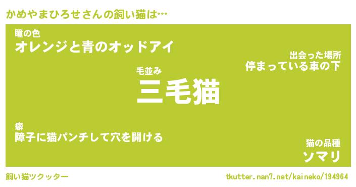 | 猫 | 猫の名前『かめかめにゃん』性別『メス』 |