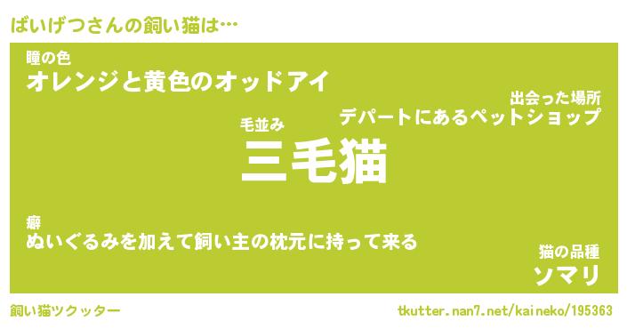 | 意味不明あだ名 | 『ペロリンばいげつ』『永久保存ばいげつ』 |