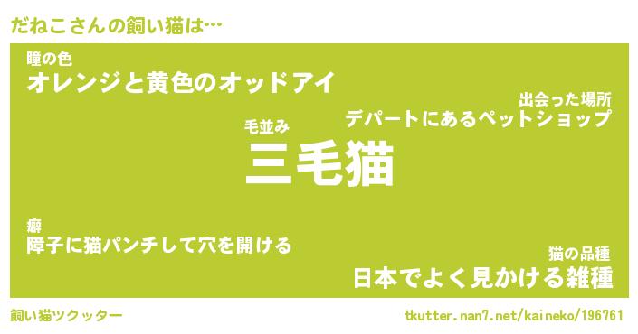 | 欧米人風あだ名 | 『マイケルだねこ』『だねこクリステル』 |