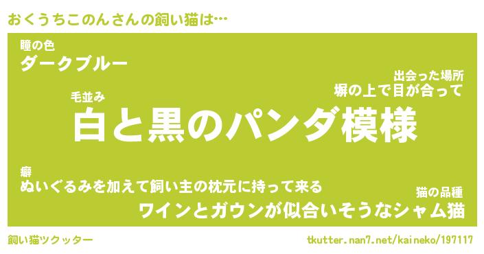 | パンダ模様のシャム猫、、(略 …「めい」 | 6月18日 03:09 |
