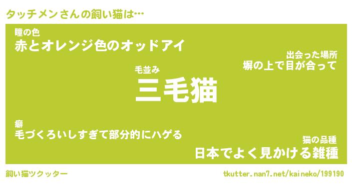| ファンタジー風あだ名 | 『タッフェル』『エターナルタッチメンー』 |