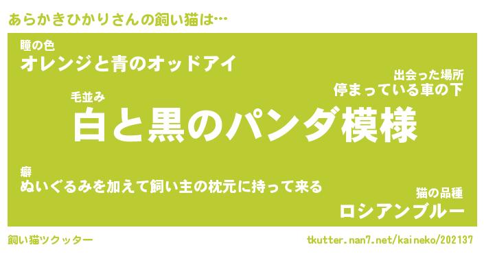| パンダ模様のシャム猫、、(略 …「めい」 | 6月18日 03:09 |