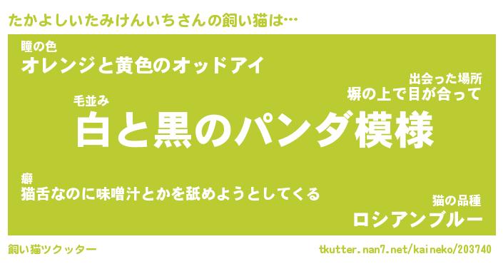 | 猫 | 猫の名前『たかよしいたみけんいちーにゃん』 |