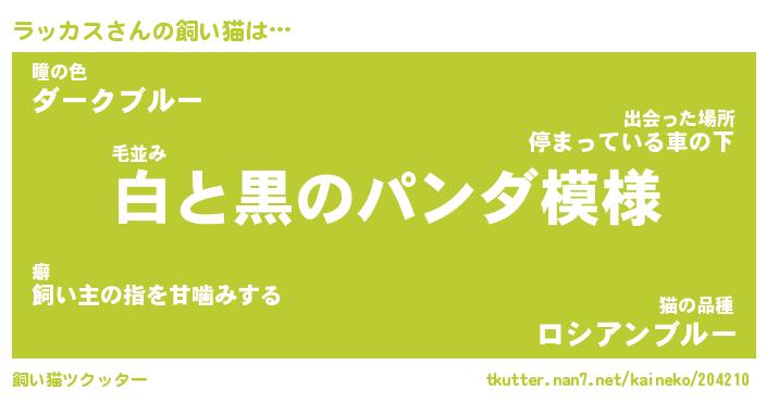 | ツイッター | ラッカスさんのツイッターID『dendenmushi_man』 |