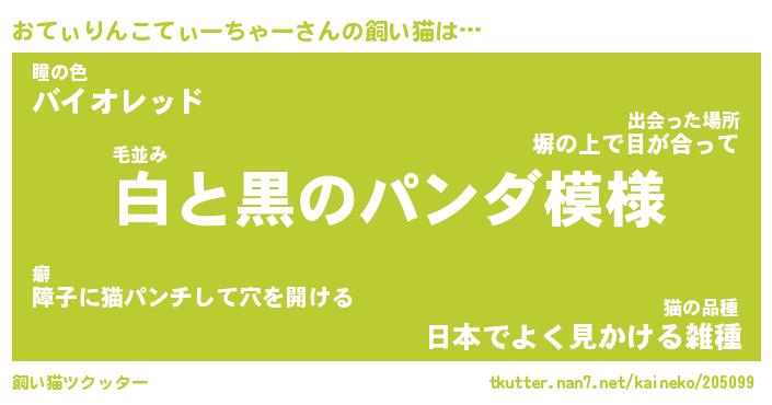 | ツイッター | おてぃりんこてぃーちゃーさんのツイッターID『namakemono_nyan』 |
