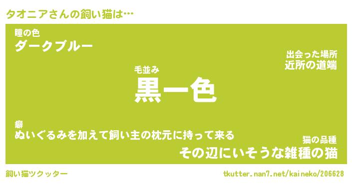 | 男性向けラノベタイトル風あだ名 | 『タオニアの憂鬱』 |