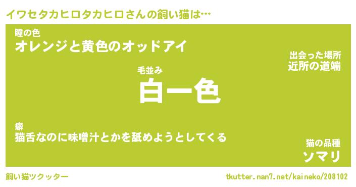 | 猫 | 猫の名前『イワセタカヒロタカヒロにゃん』 |