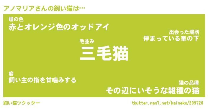 | 猫 | 猫の名前『アノアノにゃん』性別『♀』 |