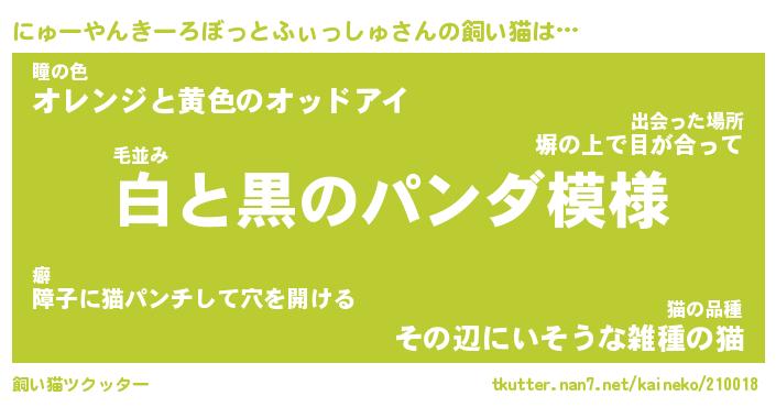 | ツイッター | にゅーやんきーろぼっとふぃっしゅさんのツイッターID『dendenmushi_nyan』 |