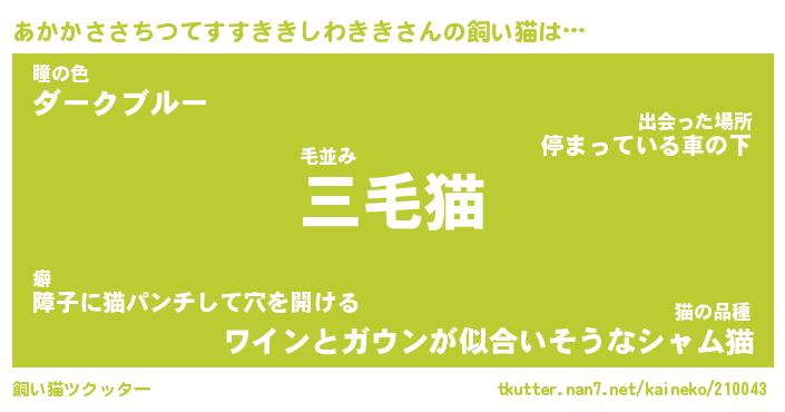 | パンダ模様のシャム猫、、(略 …「めい」 | 6月18日 03:09 |