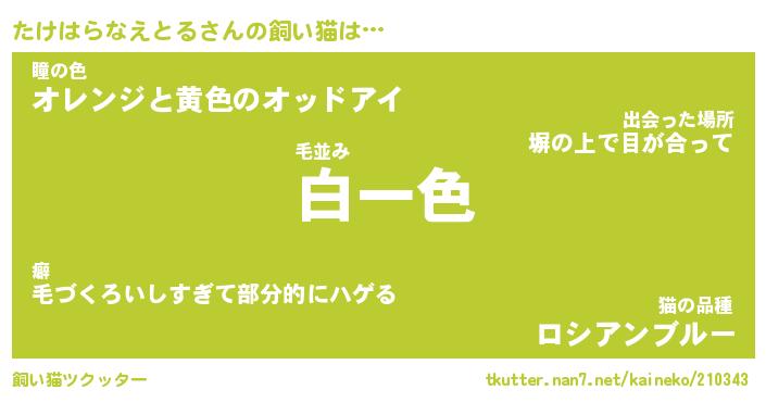 | 男性向けラノベタイトル風あだ名 | 『たけはらなえとるの憂鬱』 |