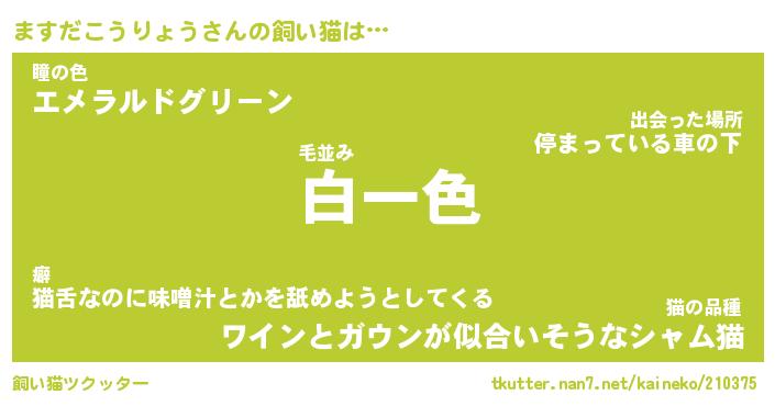 | パンダ模様のシャム猫、、(略 …「めい」 | 6月18日 03:09 |