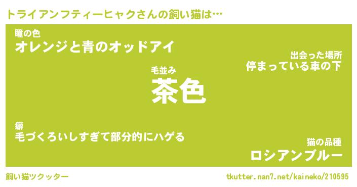 | 男性向けラノベタイトル風あだ名 | 『トライアンフティーヒャクの憂鬱』 |